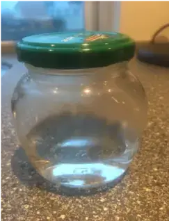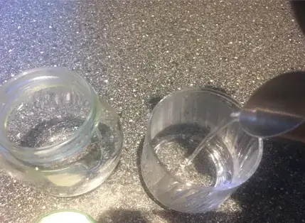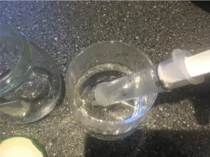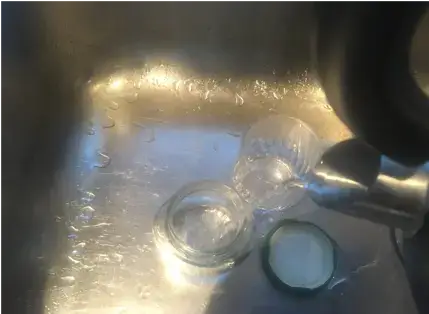 Skold glas og låg til opbevaring af opløsningen og brug kogt afkølet vand.